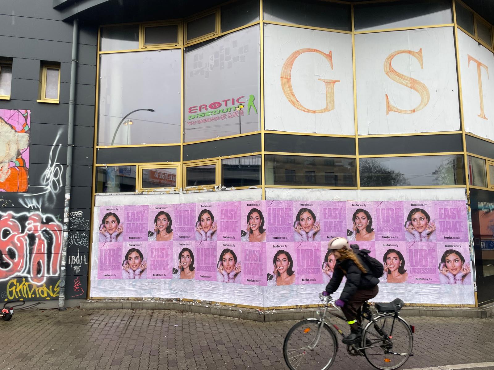 Diesen Januar arbeitete Paper Trails mit der Kosmetik Linie Huda Beauty zusammen. Das ambitionierte Projekt deckte mehrere Städte in Pink: Berlin, Düsseldorf, Frankfurt, Köln, Hamburg, München, London und Paris. In den Deutschen Städten zierten die auffällig Plakate im A1 Format in der Form von Wild Pakatieren die urbane Szene. In Paris und London dominierte ein LED Truck die Aufmerksamkeit der Passierenden.