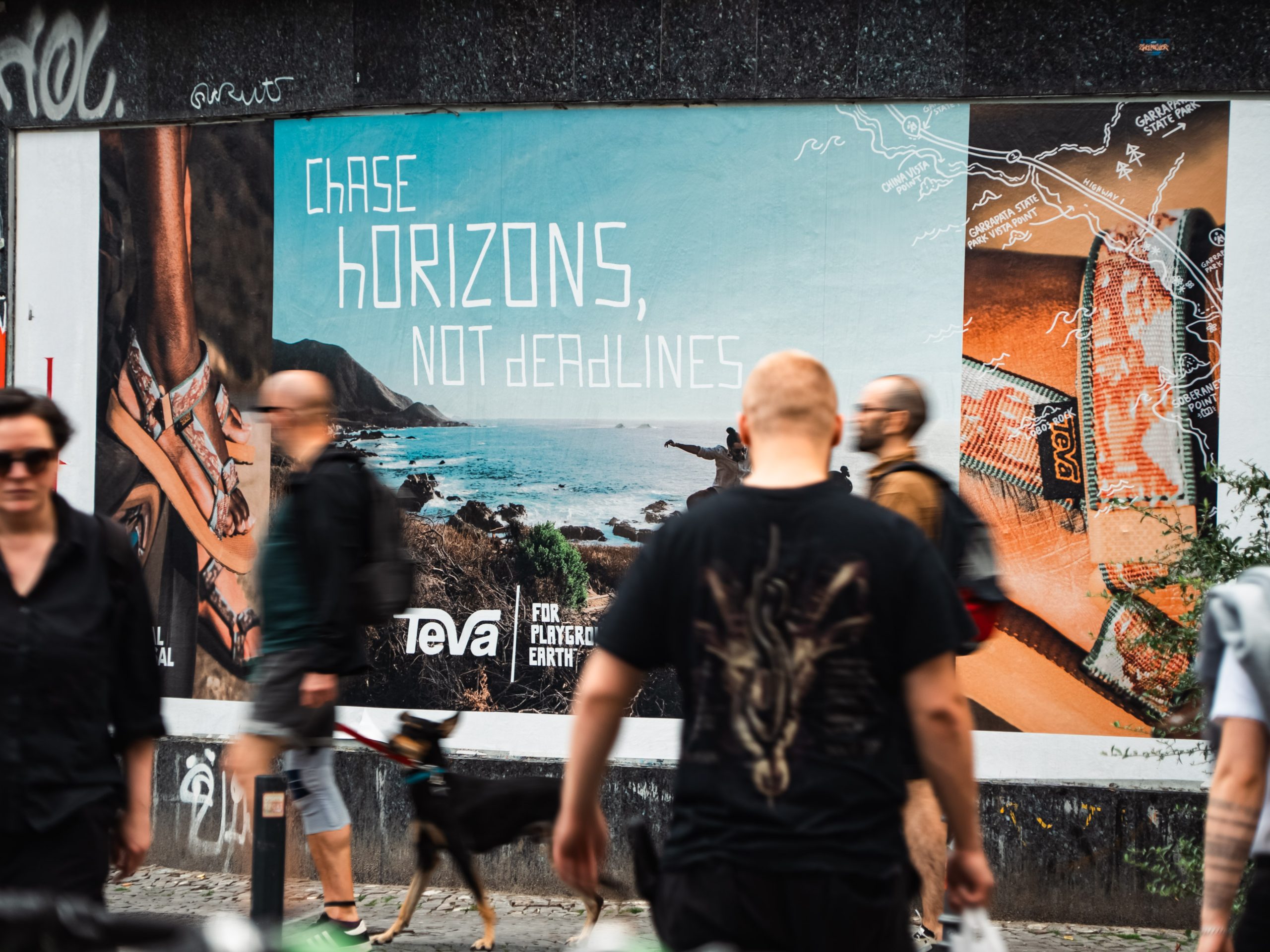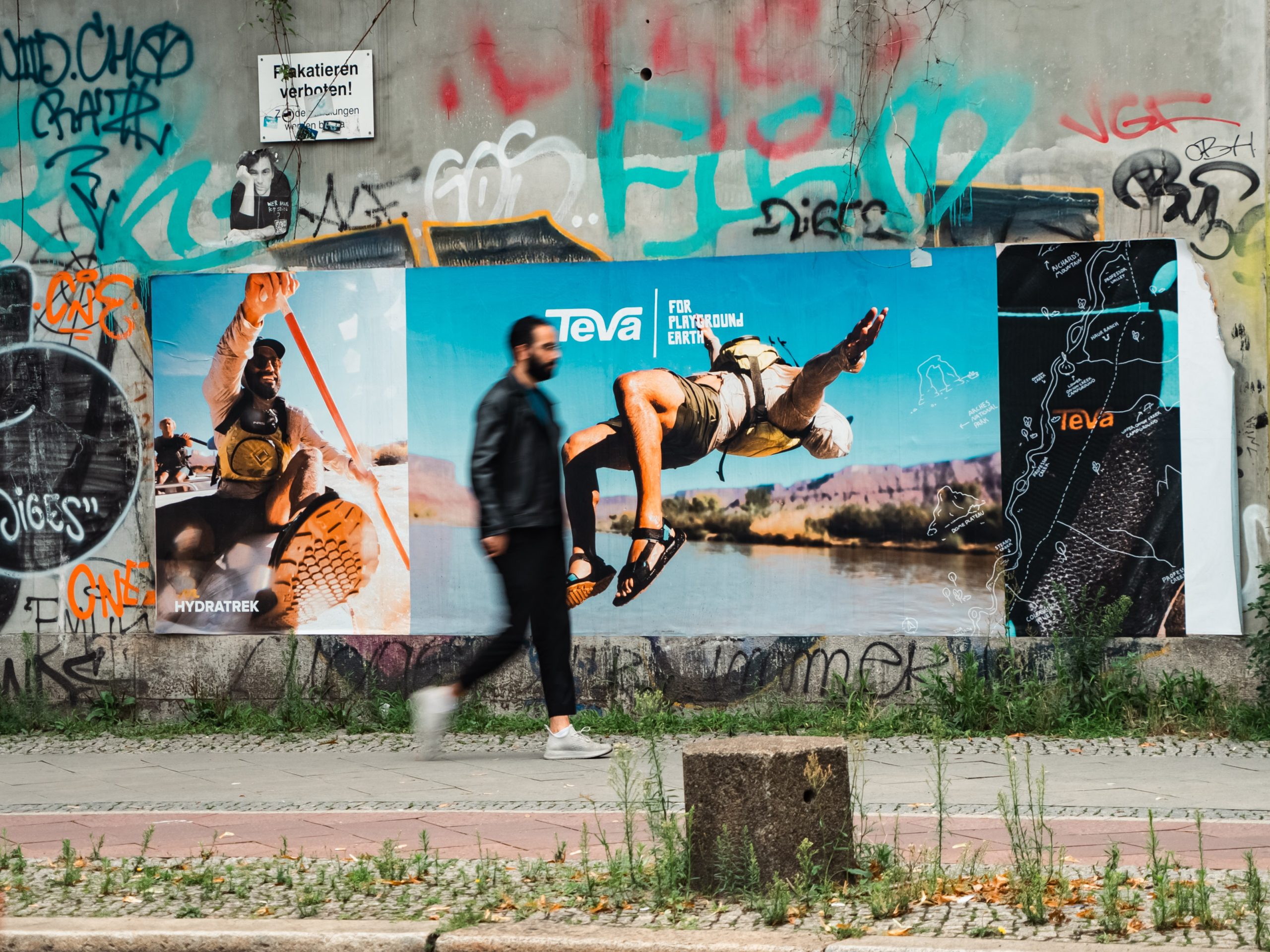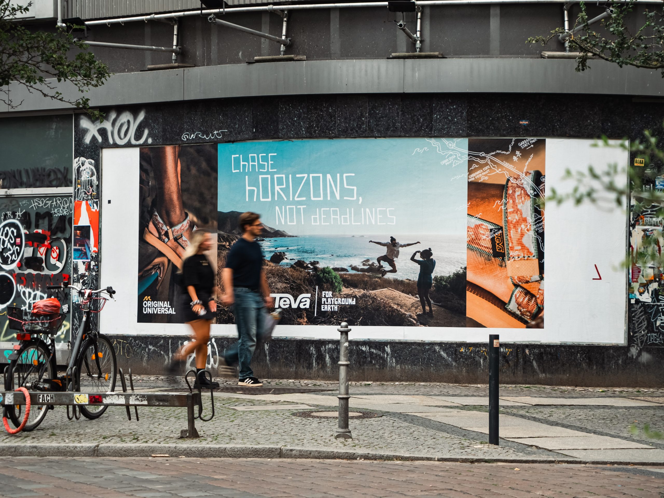 Diesen Sommer arbeitete Paper Trails mit dem Schuhhersteller TEVA an einer Kampagne in Deutschland. Die Stadtlandschaften von Berlin, Hamburg, und Köln wurden dabei in den farbenfrohen Motiven eingekleidet. Dabei haben wir von Stadbannern, digitalen Screens, und freiem Plakatieren gebrauch gemacht.